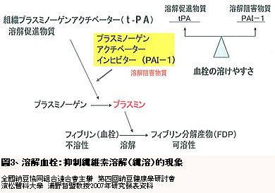 溶解血栓的作用降低的話,會變成引起血栓症的危險因子。血栓的溶解度決定於,促進血栓溶解物質「t-PA」及阻礙血栓溶解物質「PAI-1」這二者之間的平衡。