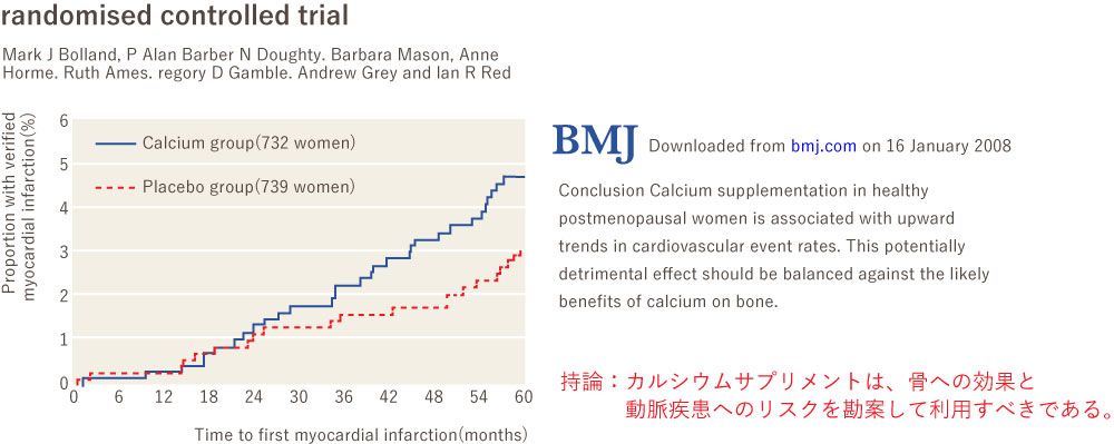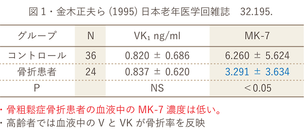 オランダで実施された、約5,000人を対象にした10年間の調査で、ビタミンK2(MK-7)を多く摂取したグループ(一日平均45μg)は、少ないグループ(一日平均18μg)に比べて心臓病の発症率と心臓による死亡率が半減したことが明らかになりました。 一方、野菜や海草に含まれているビタミンK1には相関が認められませんでした。
